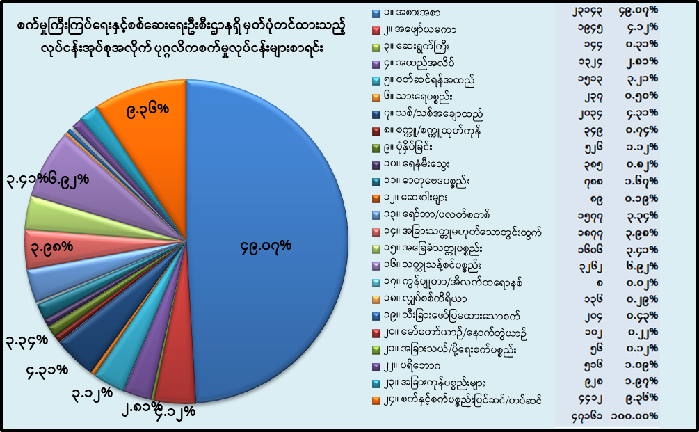 | ၂၃ | အခြားကုန်ပစ္စည်းများထုတ်လုပ်ခြင်း | ၂၂၆ | ၄၄၄ | ၂၅၈ | ၉၂၈ |