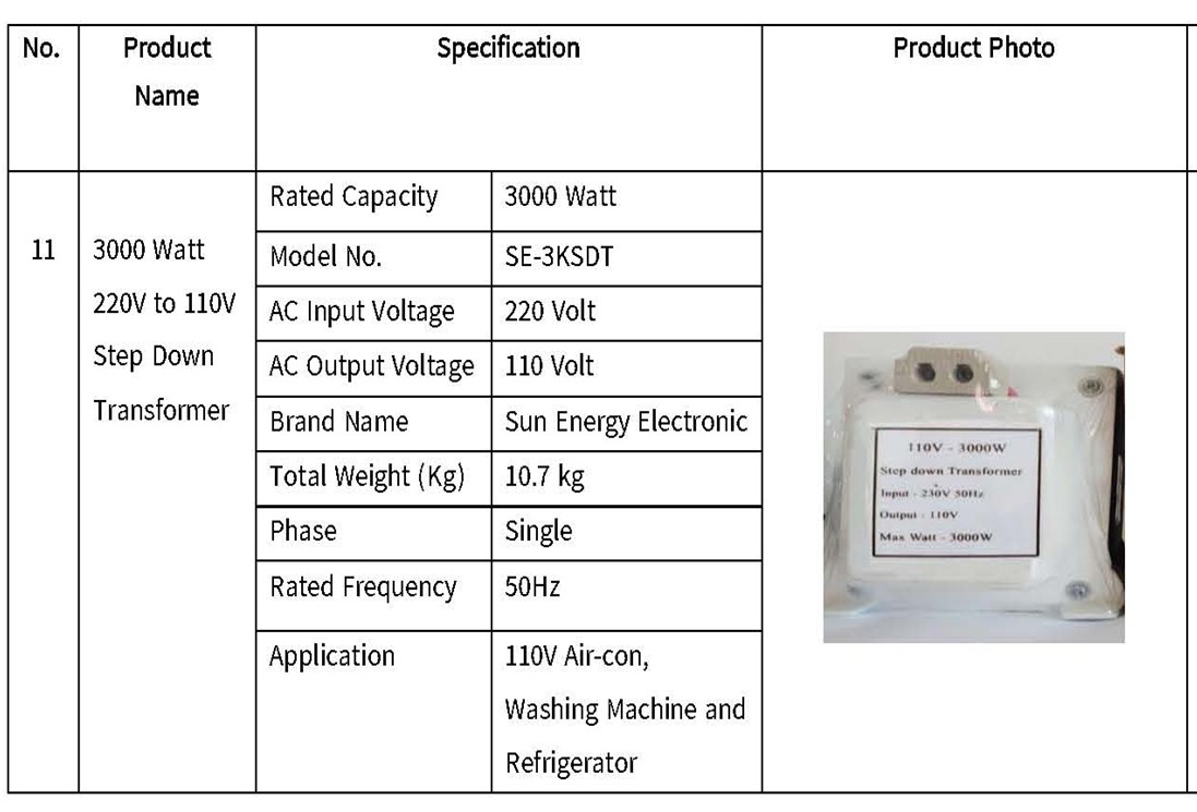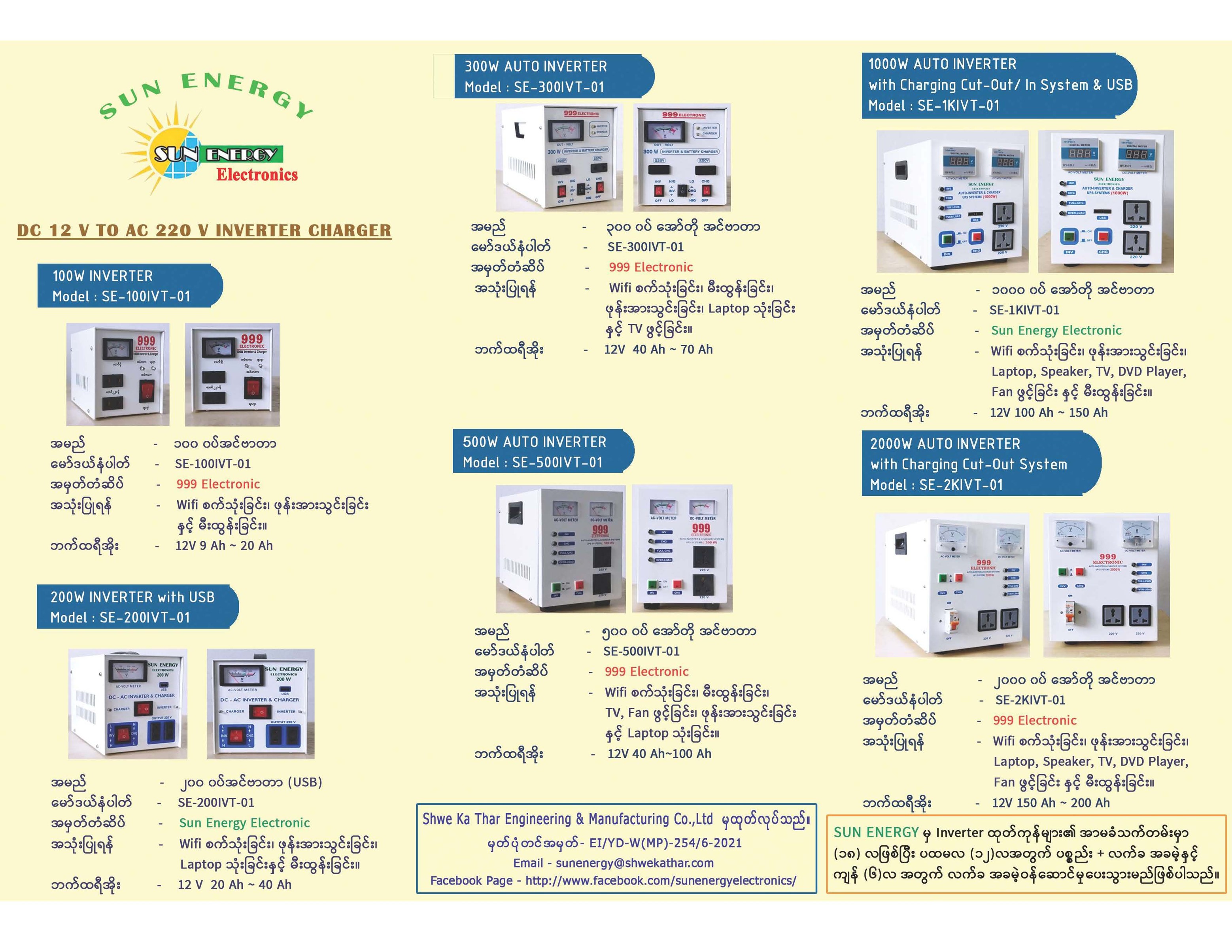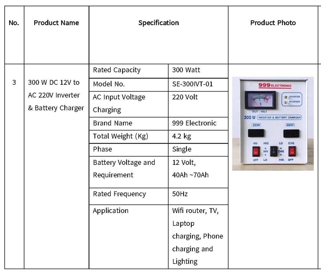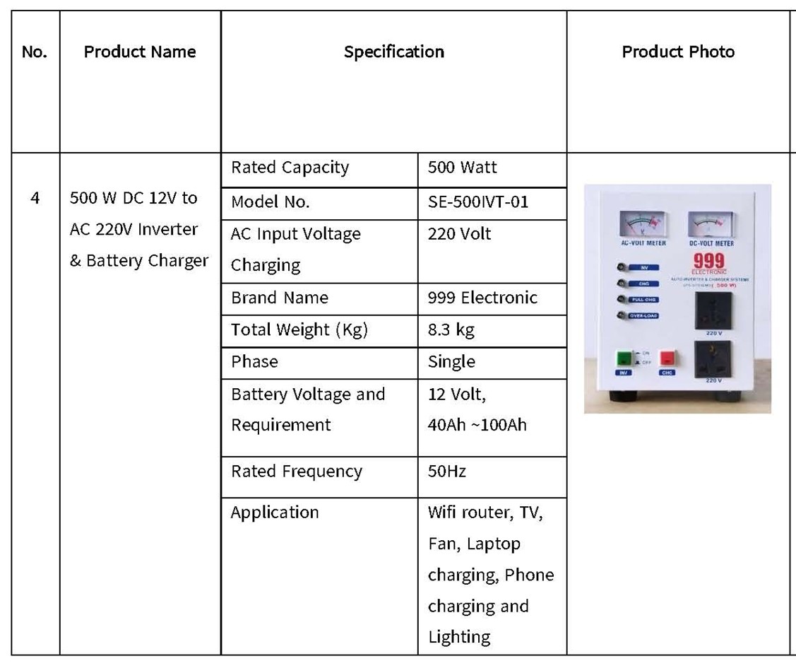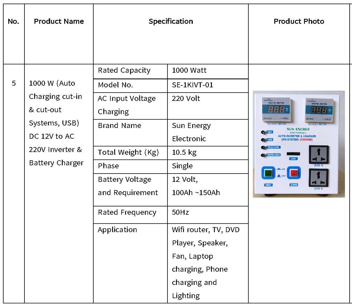 1000 W (Auto Charging cut–in & cut-out System, USB) DC 12v to AC 220v |