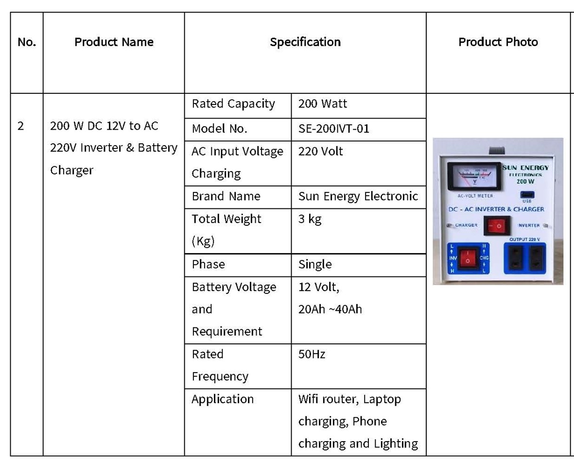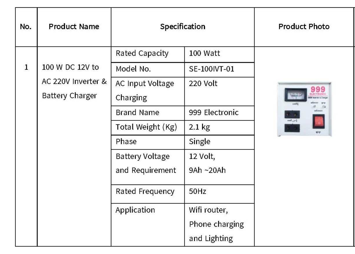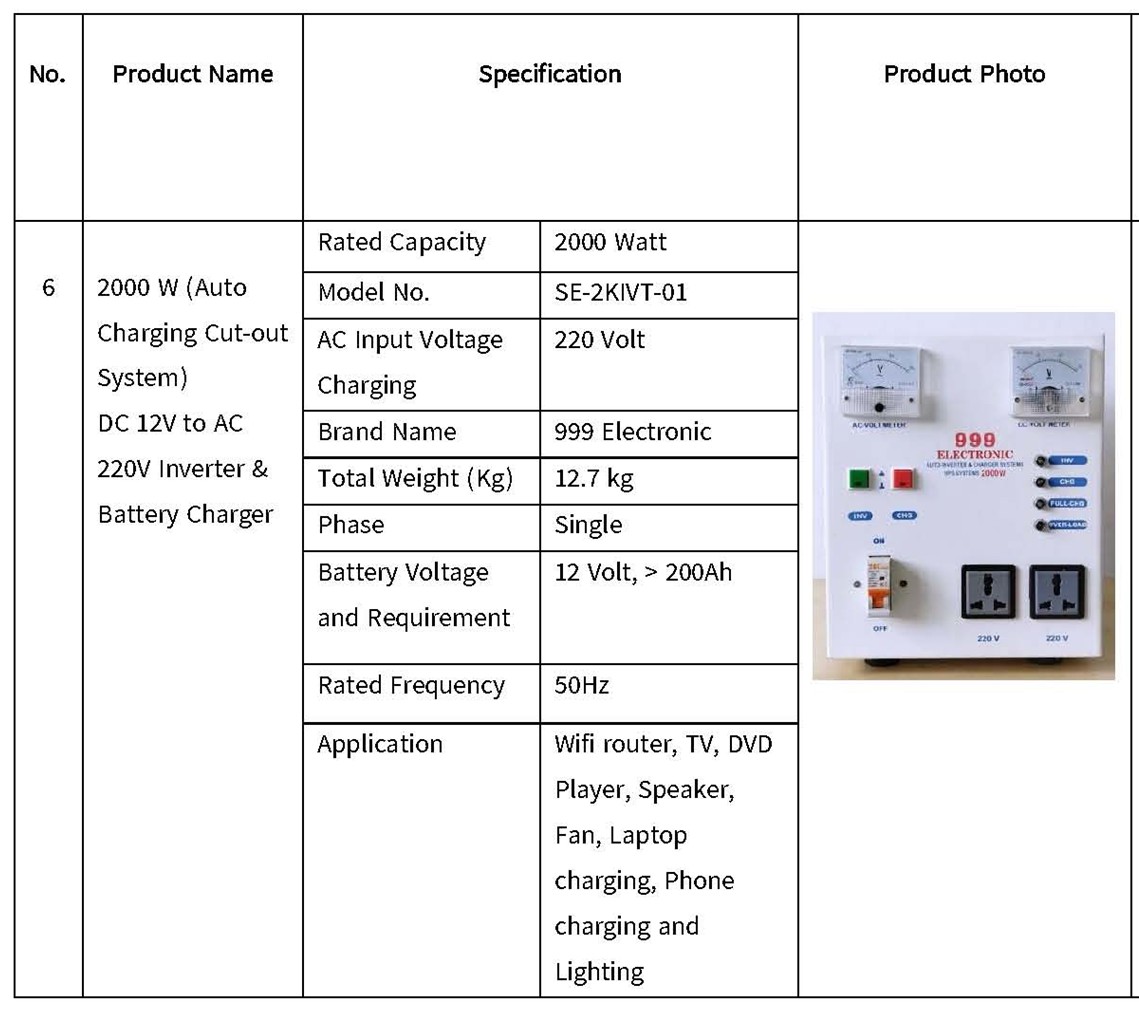 1000 W (Auto Charging cut–in & cut-out System, USB) DC 12v to AC 220v |